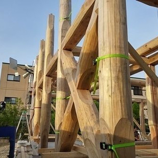 柱 梁は 神奈川 山梨 長野の木材 手刻みでくみ上げました。 建て方の際は 道行く人たちが あまりの迫力に 驚いていました。